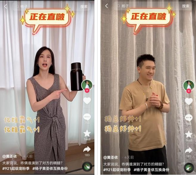 例如,驚喜主播黃圣依發(fā)布的視頻中,她與楊子互換直播畫風,黃圣依由溫婉風變身霸氣風,楊子則由霸氣風變身溫婉風,笑果十足的視頻吸引數(shù)萬點贊,用戶也對「超級寵粉季」形成更高期待。