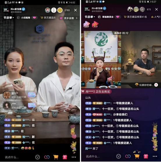 而對于b端來說,首先通過李玉剛、李亞鵬這樣的公眾名人,以及余寅這樣的90后+景德鎮(zhèn)名窯口藝林堂堂主、點茶技藝和茶文化的傳播者范俊雯這樣的業(yè)內大咖,先來一次高勢能的暖場,以內容直播、大咖分享、連麥等形態(tài)拉開“賞瓷茶會”的大幕。