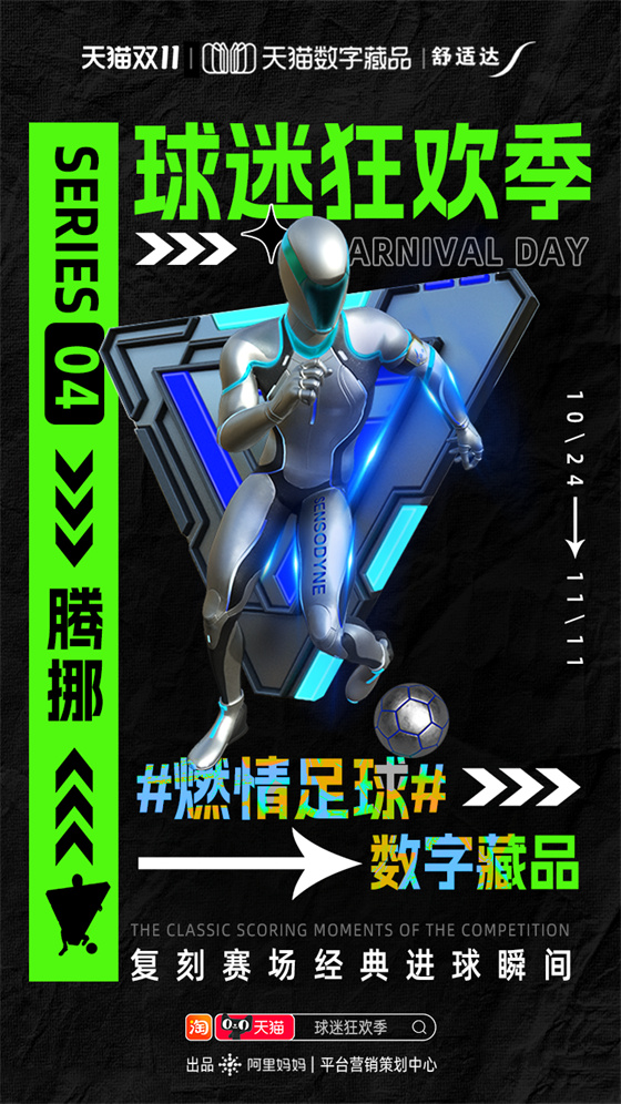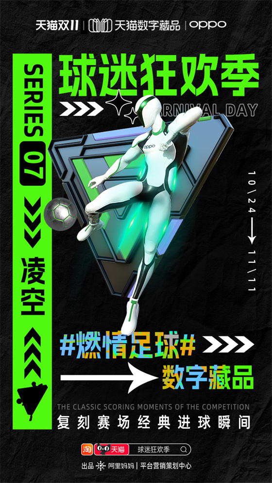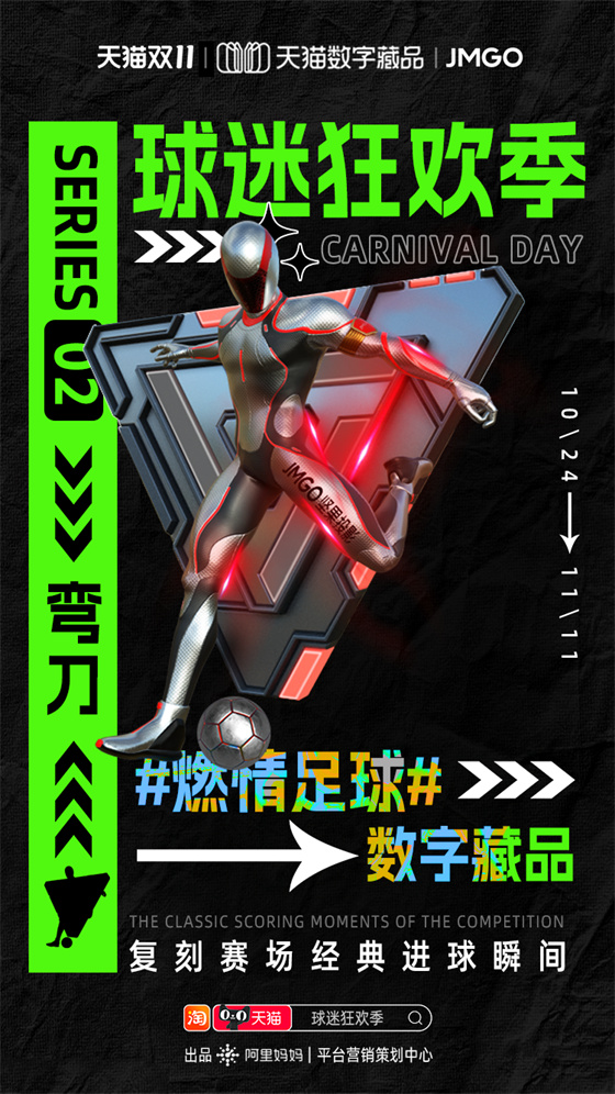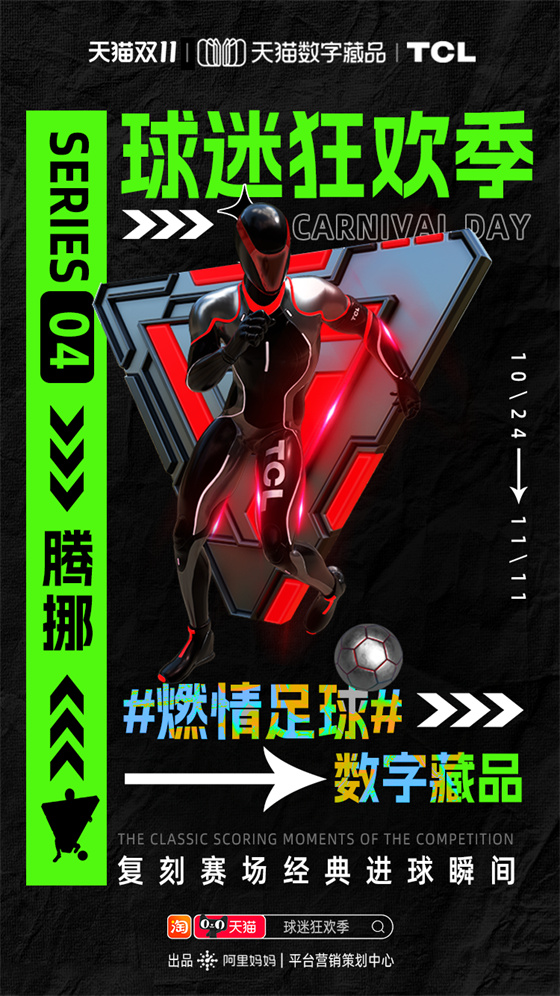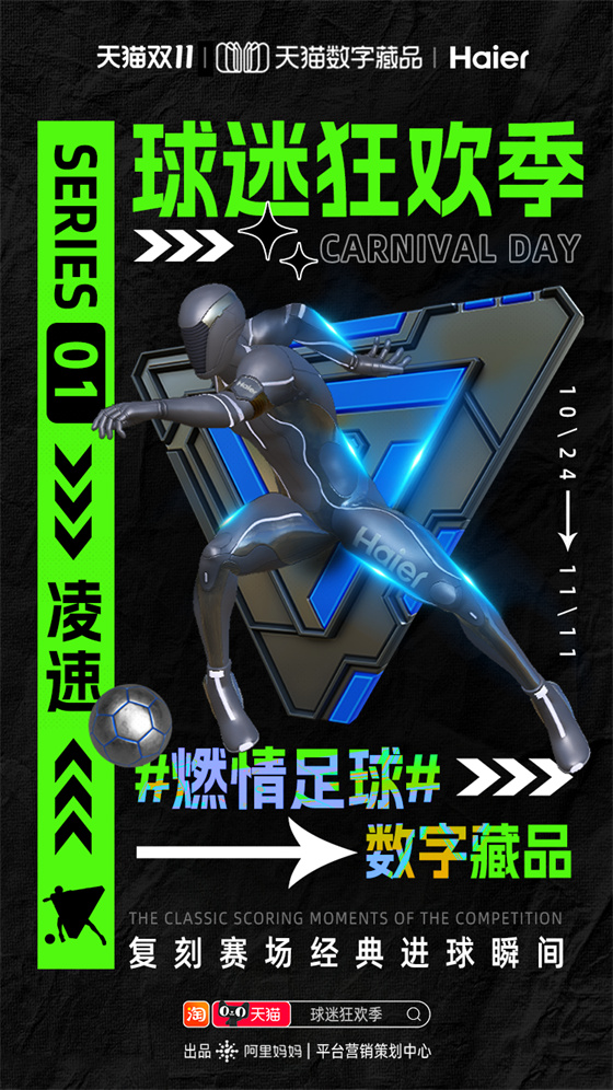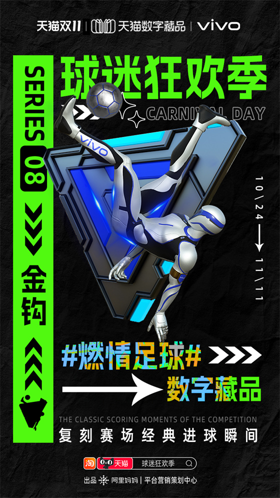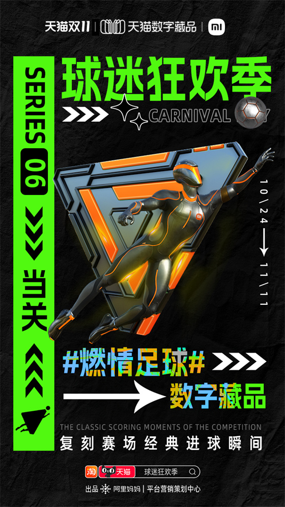 雙11期間阿里媽媽平臺營銷策劃中心推出“球迷狂歡季”項目,就為品牌商家和球迷用戶搭建世界杯營銷舞臺。通過球迷狂歡互動玩法、足球數(shù)字藏品、世界杯專屬人群標(biāo)桿等,并聯(lián)合央視頻打造的《央Young球迷之夜》直播綜藝,將超級內(nèi)容、元宇宙營銷和流量運(yùn)營完美結(jié)合,打造雙11期間天貓商家品效合一的世界杯營銷熱點(diǎn)。