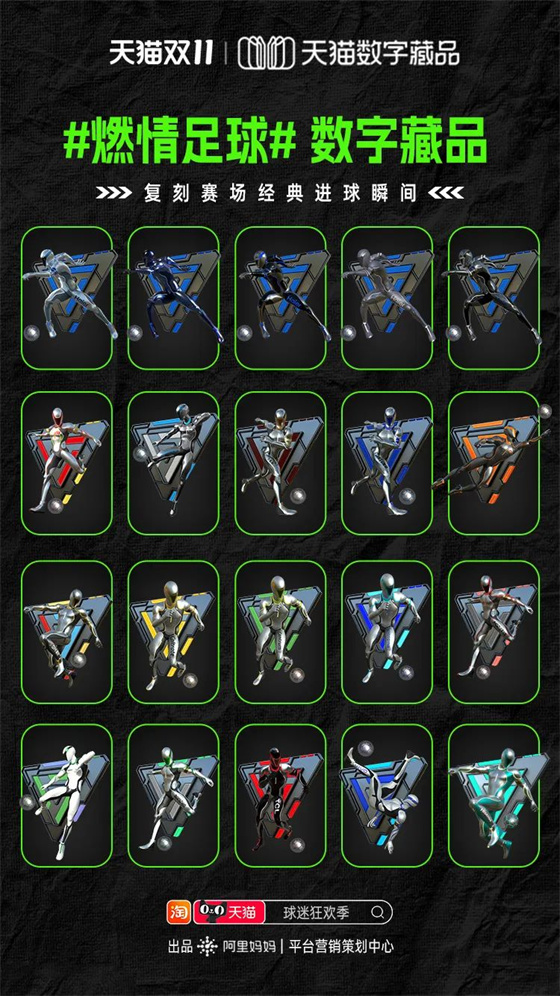 阿里媽媽平臺營銷策劃中心還引入了數(shù)字藏品,直擊年輕人的興趣點(diǎn)。這次針對世界杯的天貓數(shù)字藏品,復(fù)刻的是賽事經(jīng)典進(jìn)球瞬間,同時又融合了各個品牌商家的特征,幫助品牌打造數(shù)字資產(chǎn),增強(qiáng)與用戶的營銷關(guān)聯(lián)。