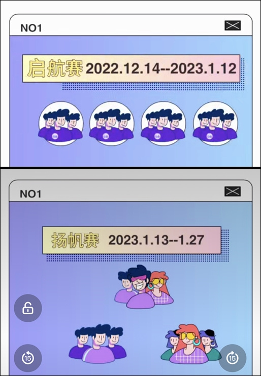 活動設(shè)置兩個賽段,首先是為期30天(2022.12.14-2023.1.12)的啟航賽。之后該賽段積分倒序排名前150名公會,進(jìn)入到為期15天(2023.1.12-2023.1.27)的揚(yáng)帆賽。