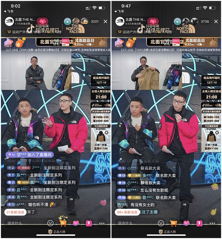 直播過(guò)程中,@JimmyWu不但詳細(xì)闡述了本次聯(lián)名款設(shè)計(jì)的理念,還展示了歷年與北面合作的產(chǎn)品,期間配合@Jun以資深戶外玩家視角給出專業(yè)點(diǎn)評(píng),有力激活用戶消費(fèi)熱情。