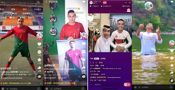 走出大山,更多來自不同地區(qū)、不同職業(yè)、不同年齡層的普通足球愛好者,也在用短視頻記錄和分享著對足球的熱愛。新疆伊犁人木拉?。ˊ農(nóng)村的羅)因長相酷似球星C羅而走紅網(wǎng)絡(luò)。在靚麗的標(biāo)簽之外,他其實(shí)是個行走在田野上的大學(xué)生創(chuàng)業(yè)者,干農(nóng)活、養(yǎng)魚塘、賣水果占據(jù)了他大部分的生活,但只要一有時間,他就會到足球場上練習(xí)。從7歲開始便接觸足球運(yùn)動的他坦言:“長得像不像C羅其實(shí)不重要,我心里有個羅哥,他是我的夢想?!苯?,他也在快手與卡塔爾小王子直播連麥,一起表白共同的偶像“C羅”。