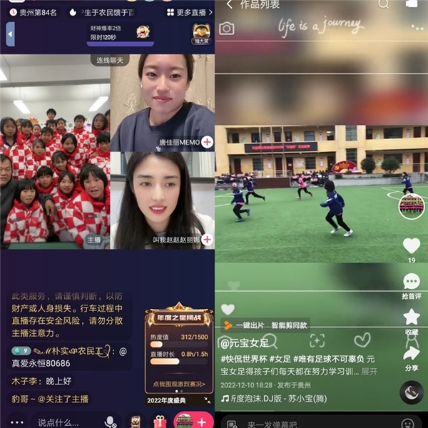 不僅是元寶女足,作為短視頻直播平臺,快手上擁有豐富的體育內(nèi)容和活躍的用戶群,其中不乏一群充滿熱血且極具地域特色的足球用戶,在世界杯期間,他們不僅頻繁登上多個平臺的熱榜,還被央視新聞、新華社、人民網(wǎng)等多家媒體關(guān)注報道,向大眾展現(xiàn)普通人的足球夢。