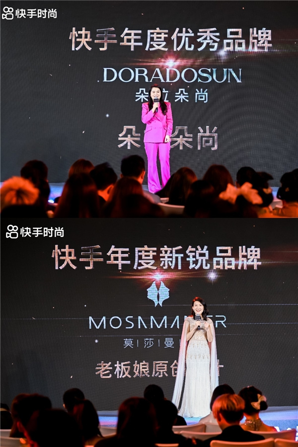 近年來,越來越多的時尚元素向短視頻賽道滲透,時尚達人們在短視頻中展示自己對時尚的態(tài)度。盛典上,快手邀請了百位泛時尚領域的優(yōu)秀創(chuàng)作者來到現(xiàn)場,分享了他們在2022年值得紀念的創(chuàng)作故事,共計54位優(yōu)質(zhì)創(chuàng)作者收獲快手時尚年度獎項,團體方面,@朵拉朵尚獲“年度優(yōu)秀品牌”獎項,@老板娘原創(chuàng)設計獲“年度新銳品牌”獎項,蘇州大禹數(shù)字文化科技集團有限公司獲“年度MCN機構(gòu)”獎項。