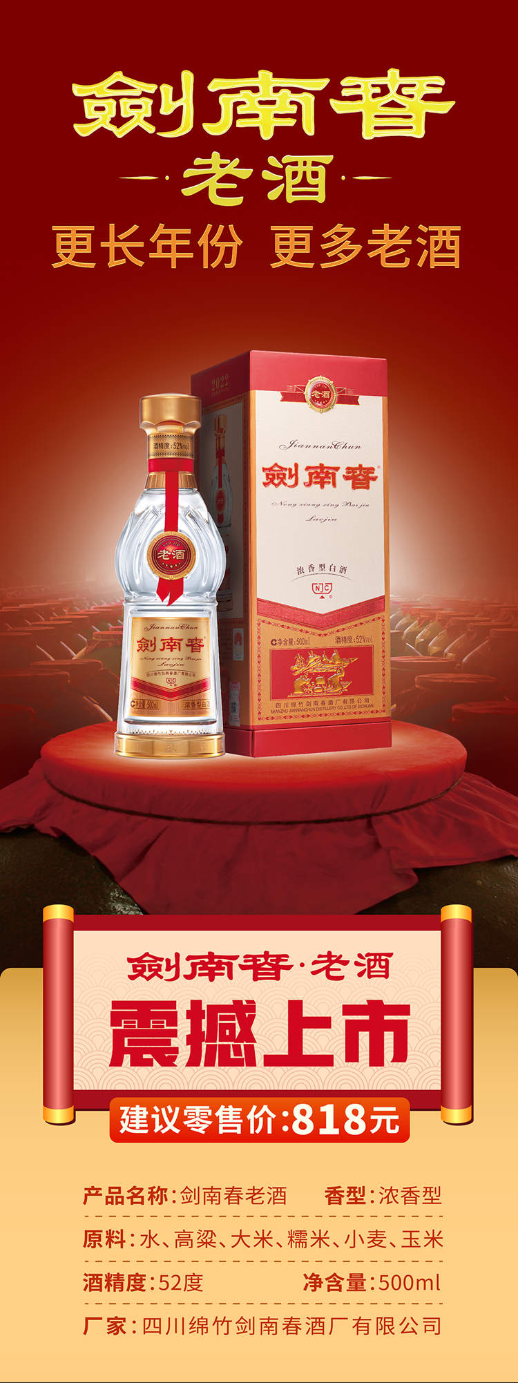 2023年伊始,劍南春重磅推出了劍南春老酒,或將成為推動老酒市場發(fā)展的一大力作。劍南春在上世紀90年代的劍南春經(jīng)典款基礎上,復刻創(chuàng)新,迭代升級推出來定位800元價位的“劍南春老酒”。其產(chǎn)品定位是水晶劍南春的上行產(chǎn)品。這款重磅單品的推出,意義非凡,自此劍南春形成了由水晶劍南春、劍南春老酒及珍藏級劍南春三款產(chǎn)品組合而成的產(chǎn)品結構,充分展示了劍南春在500-1000元次高端價位帶的戰(zhàn)略布局的完成。