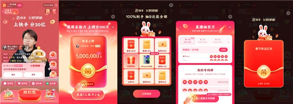 快手“家年華”活動(dòng)開(kāi)啟后,用戶在快手首頁(yè)點(diǎn)擊“紅包”標(biāo)簽,進(jìn)入春節(jié)直播間,便有紅包好禮送不停。