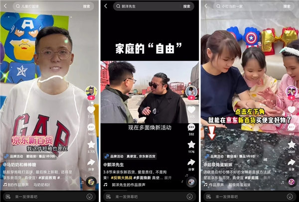 在與短視頻直播平臺的合作上,京東新百貨聯(lián)合快手打造節(jié)日營銷新玩法,通過話題挑戰(zhàn)賽、短劇營銷合作、達人種草等多元的宣推矩陣,在快手以內(nèi)容場撬動生意場,收獲了55億曝光。充滿娛樂性和話題性的內(nèi)容,不僅幫助京東新百貨3·8節(jié)完成“煥新真便宜”和“全品類爆發(fā)”的用戶心智滲透,還成功帶動品牌活動的聲量突圍、銷量轉(zhuǎn)化以及女性用戶占比增長。