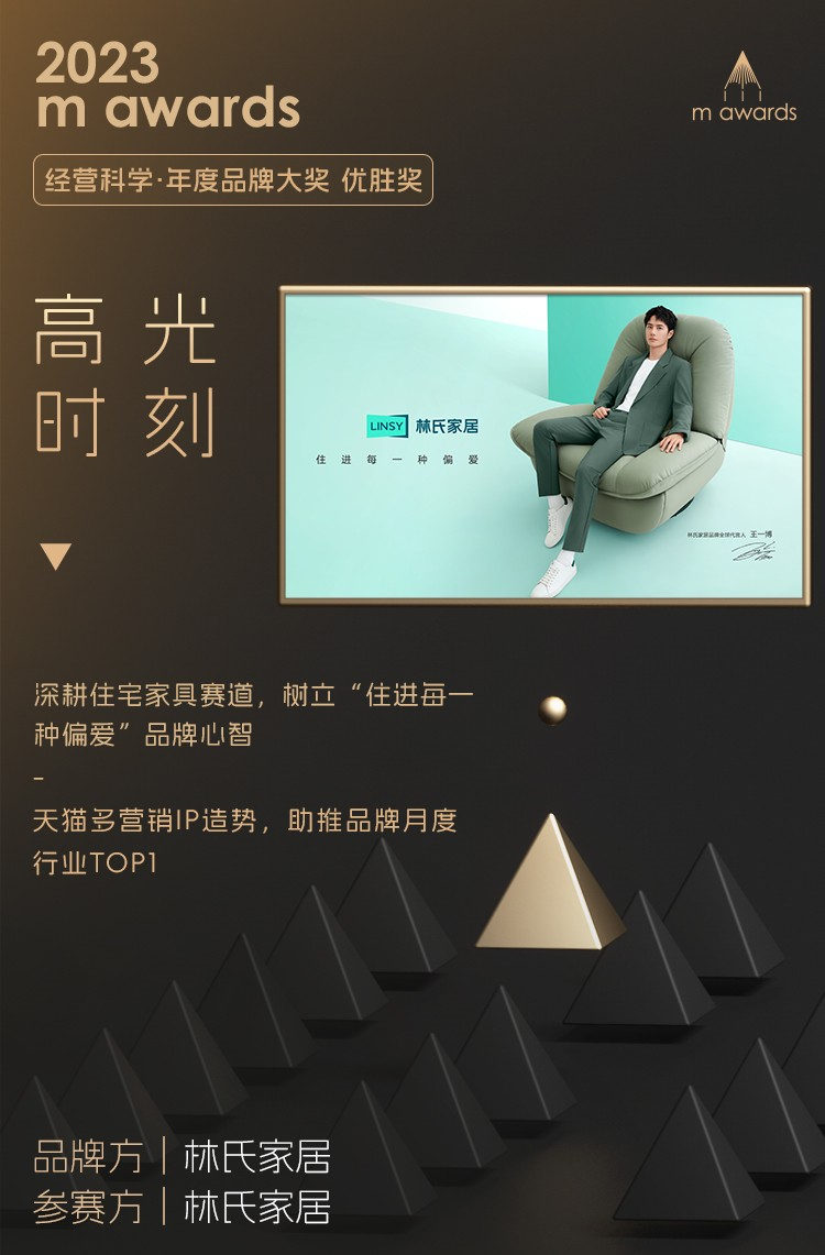 新的品牌理念也成為林氏家居發(fā)展的重要驅(qū)動(dòng)力,“住進(jìn)每一種偏愛”成功占領(lǐng)消費(fèi)者心智,賦能產(chǎn)品、渠道和營(yíng)銷成長(zhǎng)。品牌煥新當(dāng)月,林氏家居銷售額達(dá)到住宅家具類目TOP1。在本次阿里媽媽m awards頒獎(jiǎng)典禮中,林氏家居更從全球500多個(gè)經(jīng)營(yíng)案例中脫穎而出,入圍最高獎(jiǎng)項(xiàng)“年度品牌大獎(jiǎng)”獲得優(yōu)秀獎(jiǎng)。這無不顯示著,不論是消費(fèi)者,還是行業(yè)內(nèi),都對(duì)林氏家居品牌力的增長(zhǎng)有高度認(rèn)可。