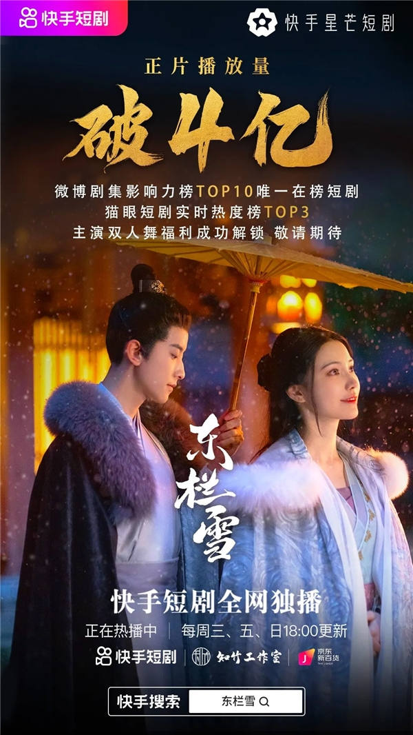 更新19集播放量已突破4.3億、單集突破1億;微博劇集影響力榜TOP10唯一在榜短劇、貓眼短劇實時熱度榜穩(wěn)居TOP3;“最希望繼續(xù)二搭的CP”、“長公主在上原班人馬回歸”等38個話題引發(fā)全網(wǎng)熱議……一系列亮眼的數(shù)據(jù),無不證明著《東欄雪》成為快手又一古風短劇爆款,實現(xiàn)了熱度與口碑的雙豐收。