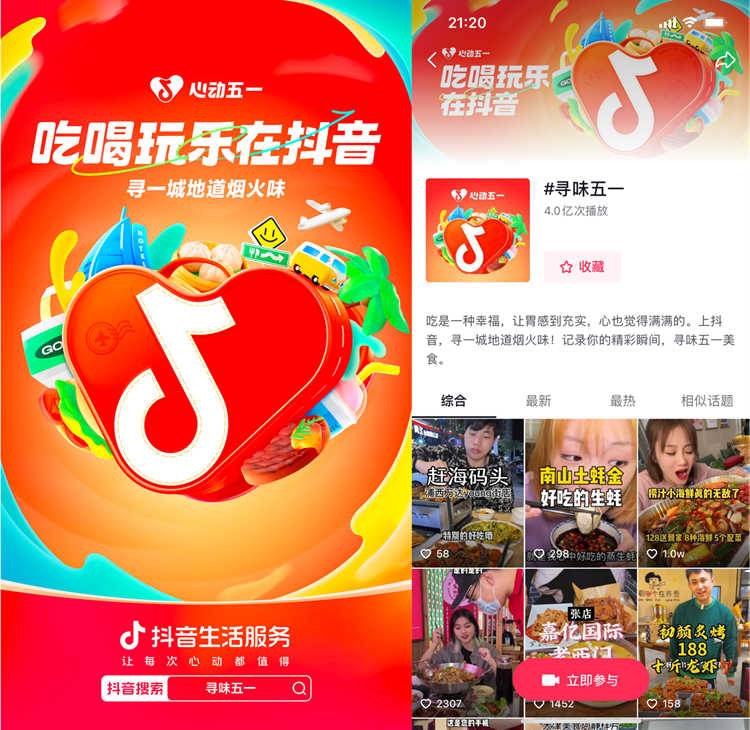 在這個(gè)五一,抖音生活服務(wù)將以“線上+線下”的場景、定制的花樣玩法、強(qiáng)勢的資源,助力商家實(shí)現(xiàn)五一好生意。