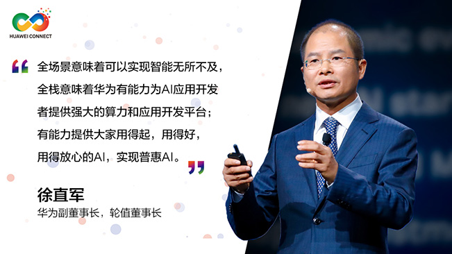 從華為輪值董事長徐直軍在2018年全連接大會上的講話中,或可得以窺見一二:“有能力提供大家用得起,用得好,用得放心的AI,實現(xiàn)普惠AI?!痹诩夹g(shù)之上,把人工智能推向新高度,把智能計算推向新高度,為產(chǎn)品賦能,讓所有人得以享用。