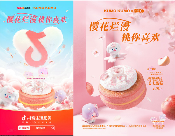本次KUMO KUMO與潮玩品牌RiCO共同在抖音生活服務(wù)「心動(dòng)上新日」推出聯(lián)名新品“櫻花蜜桃芝士蛋糕”上線,僅兩周GMV突破350萬(wàn),連破GMV新高?;顒?dòng)內(nèi)策劃話題曝光量突破1800萬(wàn),共有2000+條達(dá)人短視頻探店,短視頻曝光超過(guò)2700萬(wàn)。
