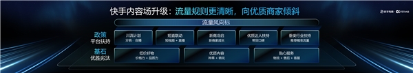經(jīng)營(yíng)者在快手電商快速發(fā)展,需要獲取更優(yōu)質(zhì)的流量資源,更精準(zhǔn)地對(duì)接用戶群體。對(duì)此,快手電商內(nèi)容場(chǎng)升級(jí)優(yōu)化了流量策略,讓整體的流量規(guī)則更清晰,向好的內(nèi)容傾斜,使更多好的經(jīng)營(yíng)者能夠享受到流量紅利。