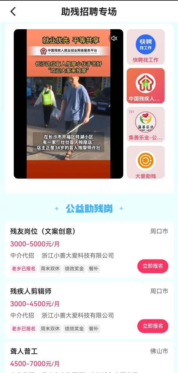 一直以來,殘疾人群體就業(yè)難的問題備受社會各界重視,而直播帶崗的興起為其開辟了更加便利高效的求職路徑。在第33次全國助殘日來臨之際,為了幫助殘疾人群體解決就業(yè)問題,5月19日至5月21日,快手快聘聯(lián)合中國殘疾人就業(yè)創(chuàng)業(yè)網(wǎng)絡服務平臺開啟“521筑愛同行”助殘日招聘專場,活動期間,挑選待遇好且適合殘疾人的崗位集中帶到直播間,通過直播帶崗的形式,切實為有求職需求的殘疾人群體提供更多就業(yè)選擇。