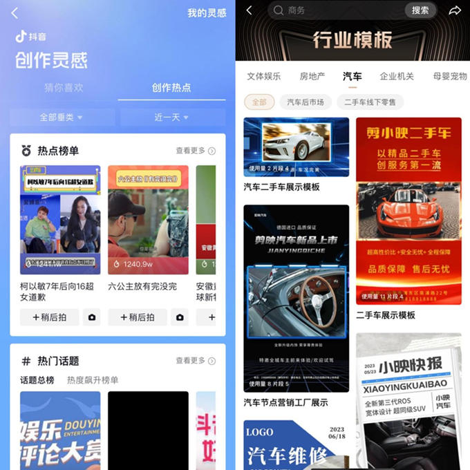 關(guān)注剪映剪同款熱榜,將熱門音樂和文案與汽車內(nèi)容相結(jié)合,以創(chuàng)造出引人注目的效果。