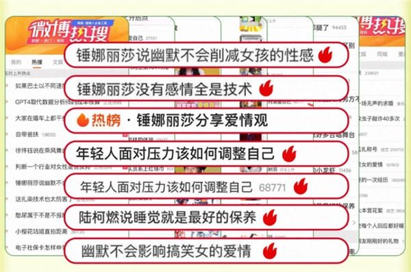 基于快手的豐富宣推資源和節(jié)目的社會(huì)性話題度,項(xiàng)目相關(guān)話題在快手站內(nèi)外引發(fā)用戶熱烈討論,產(chǎn)出大量二創(chuàng)內(nèi)容,助推項(xiàng)目?jī)?nèi)容持續(xù)發(fā)酵和伊利牧場(chǎng)影響力全網(wǎng)出圈。#幽默不會(huì)影響搞笑女的愛情、#錘娜麗莎沒有感情全是技術(shù)、#錘娜麗莎說幽默不會(huì)削減女孩的性感、#年輕人面對(duì)壓力該如何調(diào)整自己等多個(gè)話題,登陸微博熱搜總榜、微博實(shí)時(shí)上升熱點(diǎn)和快手熱榜。
