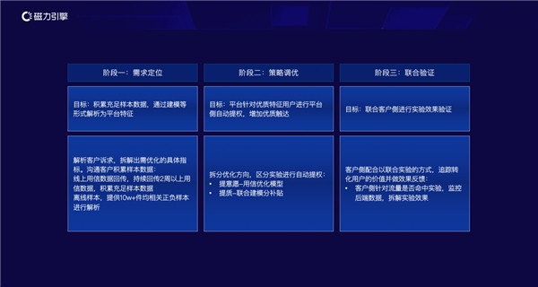 基于以上有效人群策略和營銷價值驗證,磁力引擎總結(jié)出一套完整的深度合作方案,以幫助更多客戶提升在信貸行業(yè)的投放效果。