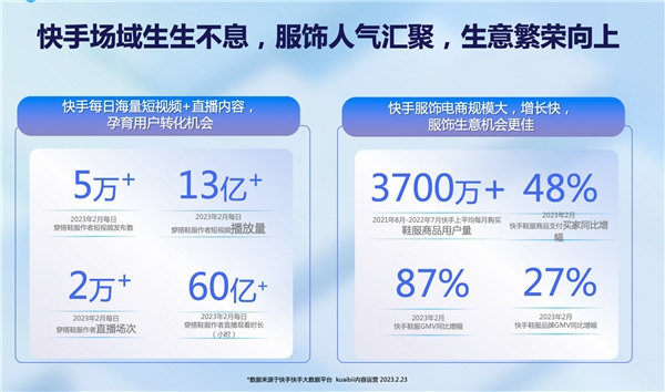 快手磁力引擎服飾業(yè)務(wù)負(fù)責(zé)人康樂表示,清河作為女裝重點(diǎn)產(chǎn)業(yè)帶,直播電商發(fā)展?jié)摿薮?快手作為一家國內(nèi)頭部的短視頻直播平臺(tái),以視頻社交構(gòu)建半熟人社區(qū),打造信任電商生態(tài),塑造長坡厚雪的生意賽道。據(jù)數(shù)據(jù)顯示,2022年快手電商GMV增長32.5%,高達(dá)9012億,快手直播電商增速領(lǐng)跑線上消費(fèi)。