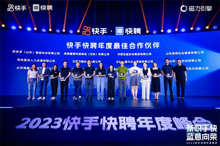 不少合作伙伴與快聘建立了穩(wěn)固且長期的合作關(guān)系,在過去一年里取得了顯著的合作業(yè)績。職多多(山東)智能科技有限公司、虎嗅薔薇傳媒網(wǎng)絡(luò)(沈陽)有限公司、河南互藍(lán)科技集團(tuán)有限公司、山東格領(lǐng)企業(yè)管理有限公司、蘇州楚風(fēng)人力資源有限公司、云南海智科技有限公司、云南紅富興企業(yè)管理有限公司、北京斗角科技有限公司、北京博融人力資源有限公司、河北云堯科技有限公司、吉林省聚人優(yōu)企人力資源有限公司、深圳市點(diǎn)聯(lián)云信息技術(shù)有限公司獲得快手快聘年度最佳合作伙伴。