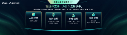 低門(mén)檻方面,充分聯(lián)動(dòng)行業(yè)資源,提供模型零元購(gòu)、硬件設(shè)備租賃、短視頻代制作及一站式解決方案;高讓利方面,最大程度地分享平臺(tái)資源,提供超高返點(diǎn)和持續(xù)保障;強(qiáng)服務(wù)方面,提供托管服務(wù)、培訓(xùn)服務(wù)、主題活動(dòng)、當(dāng)天響應(yīng)服務(wù),幫助虛擬主播快速適應(yīng)快手生態(tài)。