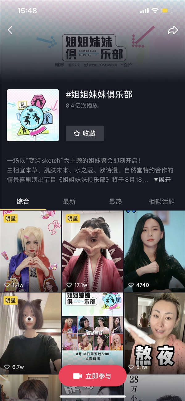 在節(jié)目直播期間,節(jié)目看播人數(shù)2842.6萬(wàn)人,張大大與Angelababy的話題頻頻登上高位熱搜,節(jié)目最終斬獲全網(wǎng)28個(gè)熱點(diǎn),曝光量達(dá)12億;截至目前,抖音話題#姐姐妹妹俱樂部 播放量達(dá)8.4億次,幫助品牌們廣泛覆蓋泛興趣用戶關(guān)注的同時(shí)收獲女性用戶的情感共鳴。