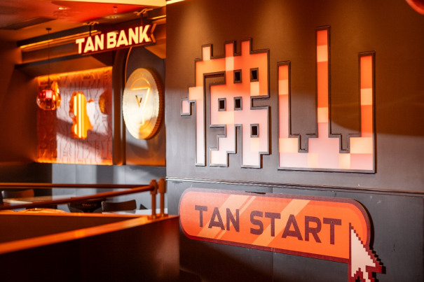 探魚參考了之前LAB店和POP店的成功運(yùn)營經(jīng)驗(yàn),聚焦多樣化消費(fèi)場(chǎng)景,洞察到用戶對(duì)美食之外的社交和娛樂需求,所以在新店型的設(shè)計(jì)上,探魚充分思考如何使用餐的全流程更加娛樂化。此次新開的探魚RICH店,便是對(duì)童年經(jīng)典桌上經(jīng)營游戲的現(xiàn)實(shí)復(fù)刻,力求與用戶達(dá)成情感共鳴。其整體設(shè)計(jì)風(fēng)格會(huì)融入了很多游戲元素,如金幣、錢莊、車站、機(jī)場(chǎng)等等。在一整套“游戲世界觀”的框架下,探魚對(duì)“RICH”內(nèi)涵進(jìn)行豐富,使之實(shí)現(xiàn)吃喝玩樂一體化的全維“爽麻”體驗(yàn)。