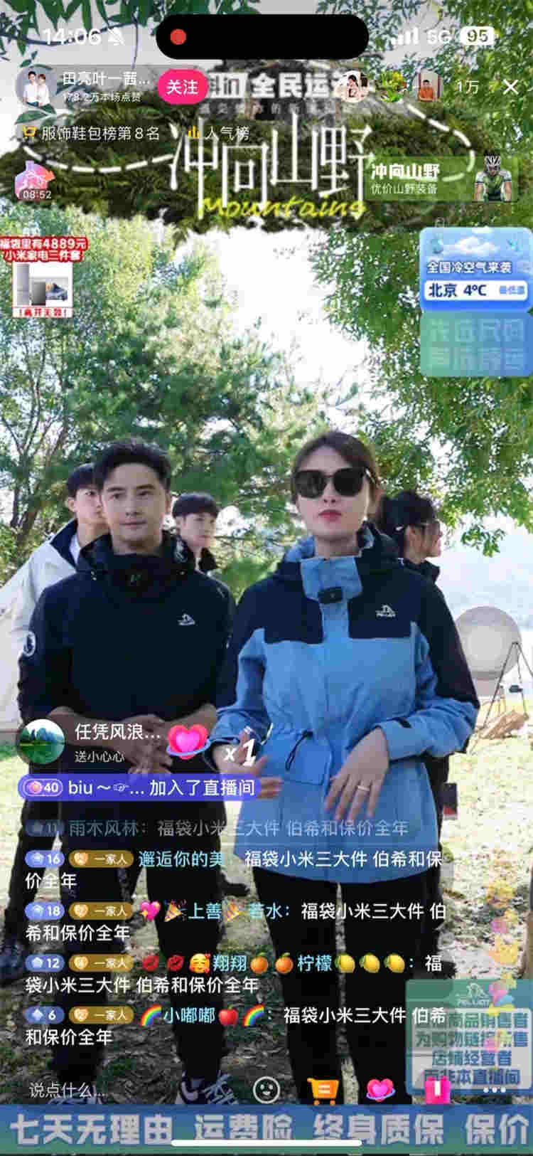 田亮葉一茜在展示產(chǎn)品時(shí),以更貼合用戶的使用場(chǎng)景,針對(duì)用戶的各項(xiàng)痛點(diǎn)進(jìn)行針對(duì)性的優(yōu)化和更新,例如在展示戶外沖鋒衣時(shí),會(huì)將品牌與場(chǎng)景融合,把秋冬主打的王牌產(chǎn)品“戶外輕暖”滲透到野營(yíng)場(chǎng)景中。