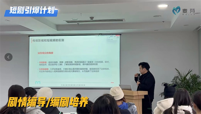 這些微短劇行業(yè)的內(nèi)部培訓也打造了一條專業(yè)人才培養(yǎng)路徑,幫助更多影視行業(yè)從業(yè)者解決了就業(yè)問題,推動影視行業(yè)的復蘇與繁榮。典型例如麥芽傳媒,當前,其批量孵化的短劇IP超過百個,其中借助商單廣告實現(xiàn)商業(yè)化的將近半數(shù)。同時,麥芽也養(yǎng)成了較為完善的編劇、編導、IP開發(fā)等幕后人才的內(nèi)部培訓流程。