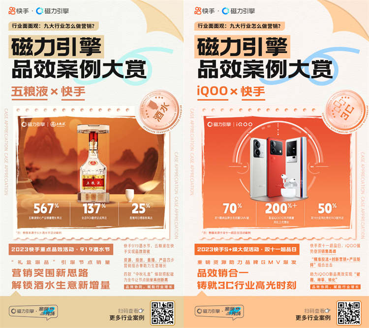 五糧液和iQOO都屬于高客單價產(chǎn)品,不具備普通日化、食飲的“走量”特點,兩個品牌精準(zhǔn)借勢快手919酒水節(jié)和雙十一節(jié)點,精準(zhǔn)聚焦人群需求,節(jié)點銷量均創(chuàng)新高。