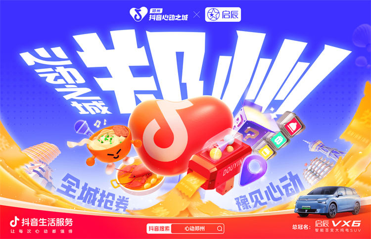 本次「抖音心動之城·鄭州站」,抖音生活服務(wù)攜手智能百變大純電SUV 啟辰VX6,聯(lián)合鄭州優(yōu)質(zhì)商家,將線上線下場景有機(jī)結(jié)合,把快樂傳遞到城市的每一個角落,拉動本地消費。讓更多消費者在豐富、有特色、有品質(zhì)的吃住玩樂一站式體驗的城市消費節(jié)中,了解、喜歡上鄭州這座歷史悠久古城。