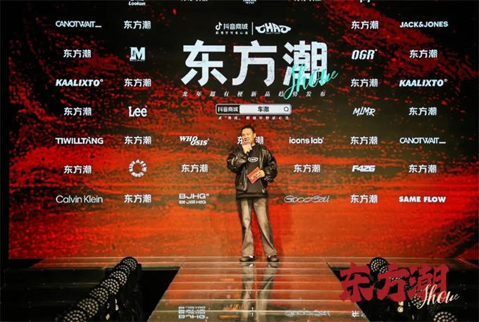 在此次“東方潮SHOW”秀場上,可以看到一眾品牌以代表“年味”的紅色作為主要視覺呈現(xiàn),并將龍的形象以各自不同的設(shè)計風格進行重塑,或是點綴、或是鋪陳于服裝單品之上;而讓達人走到秀場,這本身就是一個很有討論度的話題,秀場所展現(xiàn)的品牌產(chǎn)品,同樣包含眾多有“?!钡某绷鞅?它們不僅是潮流玩家口中反復(fù)提及、討論的對象,同樣于潮流市場有著極高話題熱度,完美契合著“龍年超有?!钡幕顒又髦?在兩者共通的邏輯下,借助活動的風,直播盛典不斷實現(xiàn)熱度的躍升。而對于抖音電商的推動作用,潮車間CEO羅琳也為我們總結(jié)了自己的看法: