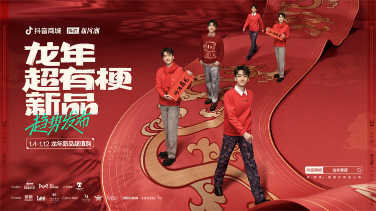 「抖in新風(fēng)潮·龍年超有?!够顒?dòng)上線#撐場面的龍年穿搭和#龍年超有梗新品兩大話題,引發(fā)消費(fèi)者的討論和關(guān)注。明星、達(dá)人緊跟熱點(diǎn),分享龍年新穿搭,展示了羽絨服、大衣、毛針織衫、衛(wèi)衣、保暖內(nèi)衣等不同品類服飾品牌的潮流態(tài)度。截至目前,相關(guān)話題的總播放量突破3億。