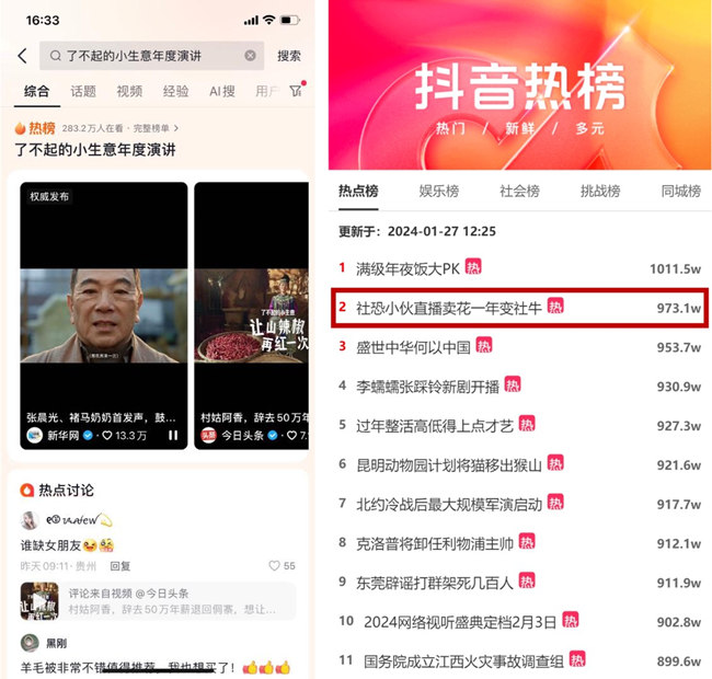 更值得注意的是,@云舍花卉 商家故事,打造#社恐小伙直播賣花一年變社牛 社會(huì)熱點(diǎn)事件,最終登上抖音總榜top2、社會(huì)榜top7位,今日頭條榜top9。投放干貨稿件被鈦媒體、新浪文創(chuàng)、首席商業(yè)評(píng)論等頭部媒體轉(zhuǎn)載。