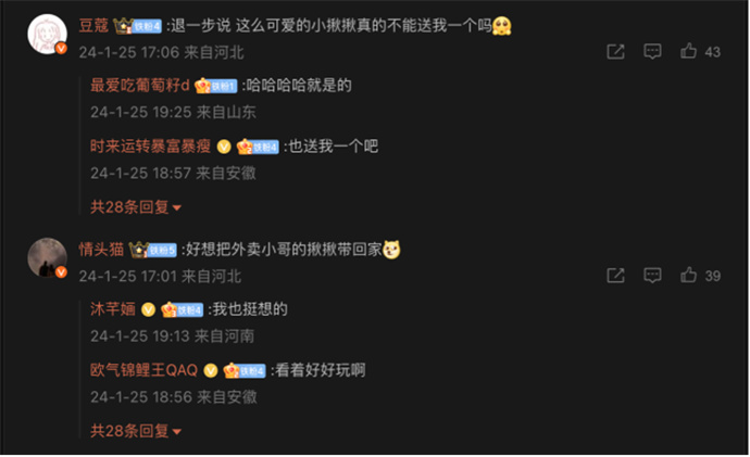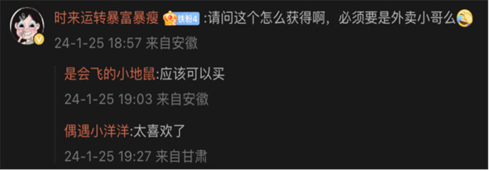 原來,小哥不僅能給玩家送貨,甚至還能激情“帶貨”,讓玩家紛紛求同款。因為美團外賣小哥作為城市中行走的廣告牌,和玩家天然就有親近感。通過小哥的力量,還能把聯(lián)名變成一種年輕人好玩的打卡儀式,進一步提升玩家對美團外賣的好感度和親切感。