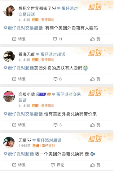 玩家們上美團外賣搶“蛋”的熱潮席卷了全網(wǎng)。聯(lián)名的相關(guān)話題登上了微博熱搜、B站熱搜和抖音熱榜。抖音相關(guān)話題達到了1.2億播放。點開相關(guān)話題一看,拿到皮膚的玩家直接上號秀新皮膚,沒拿到皮膚的表示羨慕,熱心的玩家制作最快拿到聯(lián)名皮膚的教程等等。各大平臺,一下子成了聯(lián)名皮膚的大型帶貨現(xiàn)場。聯(lián)名的熱度,給游戲帶來了潑天的流量。