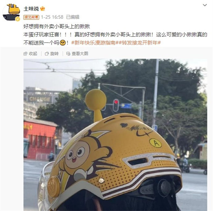 美團外賣給騎手小哥推出定制款蛋仔聯(lián)名揪揪頭盔,并落地國內(nèi)多個城市。玩家們不僅在社交媒體上曬出偶遇片段,還不禁感慨,小哥的“新皮膚”太香了并紛紛研究起來獲得渠道。