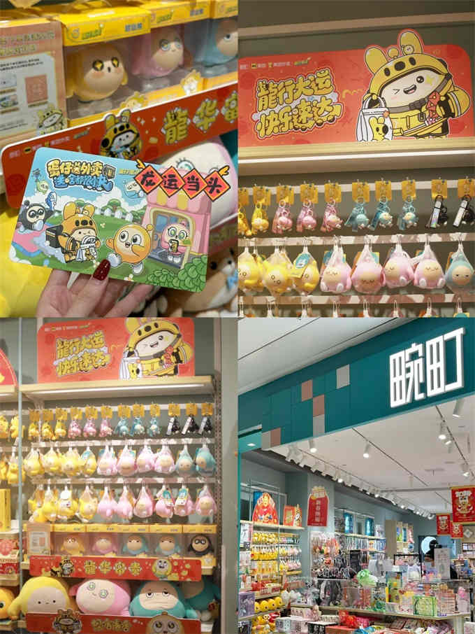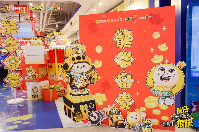 除了行走的小哥,美團外賣和蛋仔派對還推出了新春福蛋主題周邊以及主題線下門店,落地玩具反斗城、畹町、The Green Party全國眾多門店,讓這次合作不僅是一次年輕人的社交話題,還成了社交貨幣、打卡勝地。